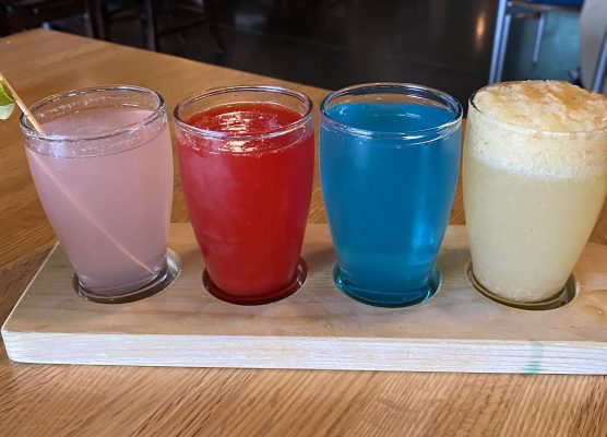They offer various kinds of crepes, omelets, skillets, scrambles, waffles, charcuterie boards (thanks to Grate Expectations), mixed berry salad, steak & eggs, french toast, lobster Benedict and more! For drinks, they offer a bloody mary charcuterie board where you can create your own bloody mary, they have unlimited mimosas, and what I ordered, the mimosa flight. The mimosa flight has cherry starburst, blue raspberry starburst, lemon starburst, and all pink starburst. They tasted just like the Starburst candies. My favorite probably had to be the lemon starburst but they were all pretty delicious, sweet but tasty.